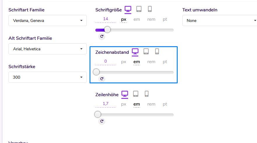 Mit den Vorlagen-Frameworks können Sie unterschiedliche Schriftgrößen, Buchstabenabstände und Zeilenhöhen für unterschiedliche Gerätegrößen festlegen.