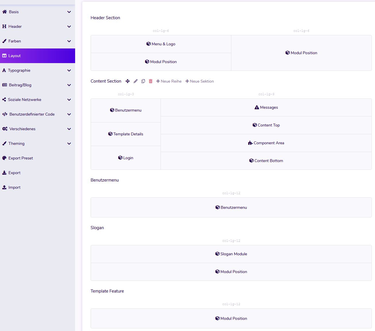 Basierend auf Bootstrap Framework ermöglicht der Drag N Drop Layout Builder unbegrenzte Positionen zu erstellen, zu verschieben und anzupassen.